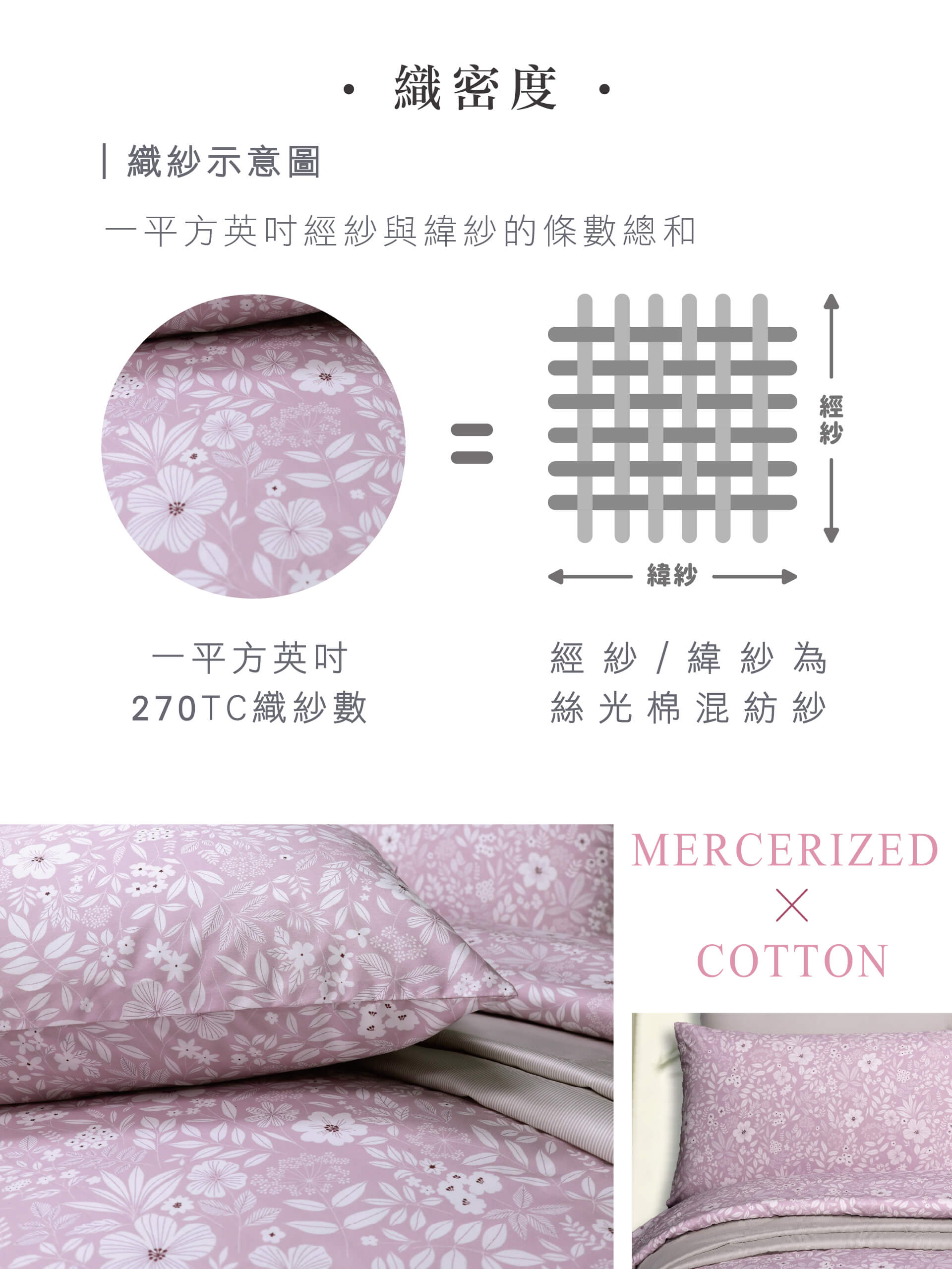 ‧ 精選世界級無汙染綠色種棉區的長絨棉,並以60支/270條高密度織造。