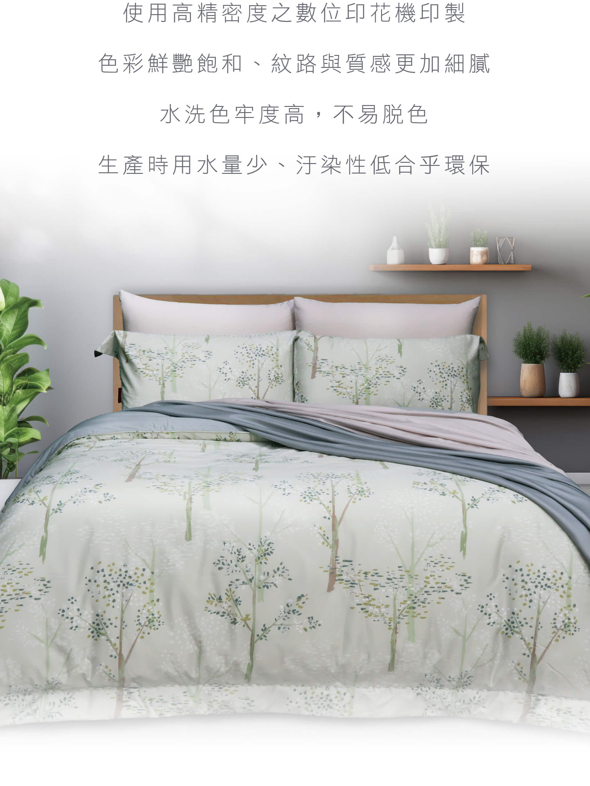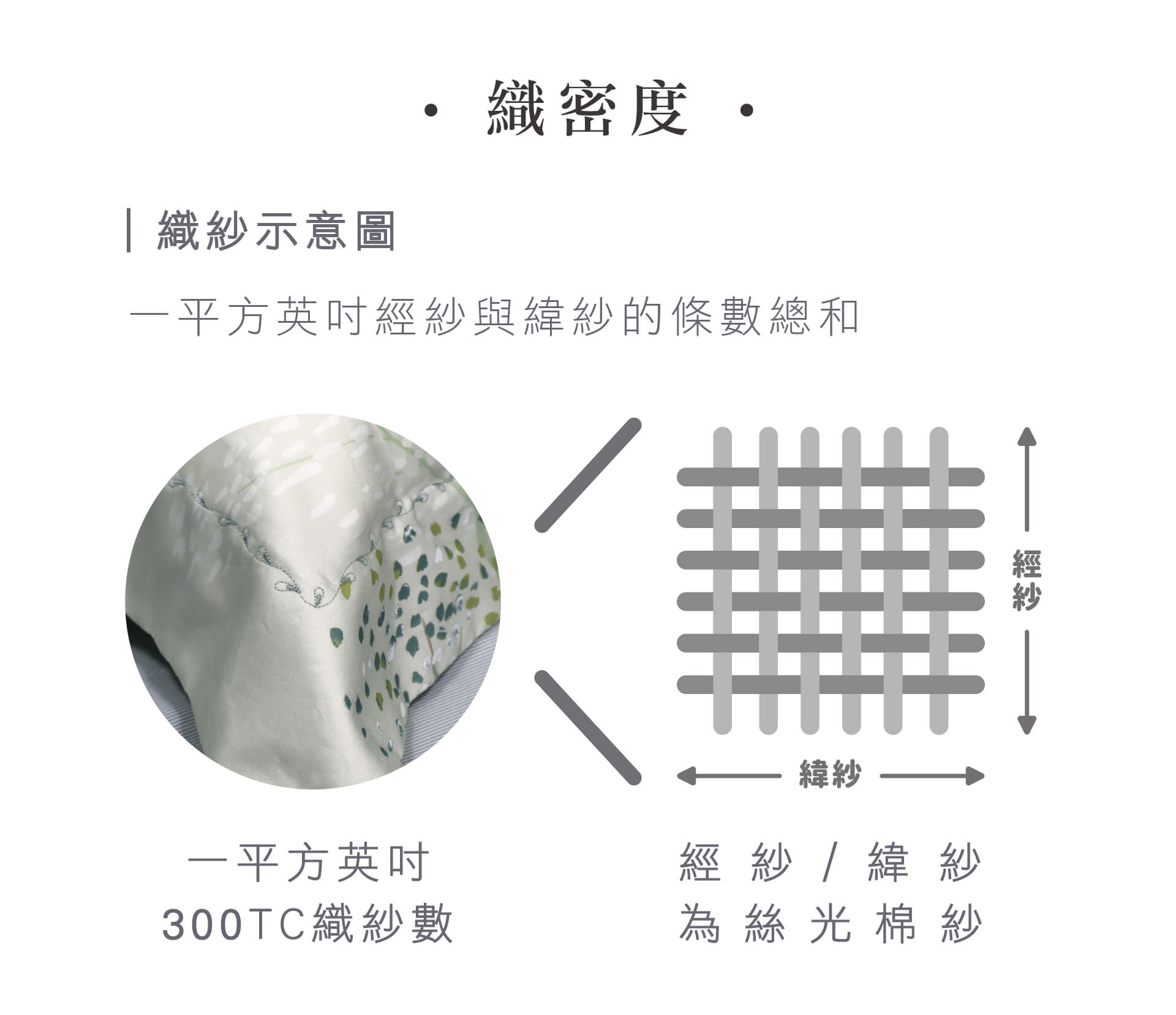 ‧ 精選世界級無汙染綠色種棉區的長絨棉,並以60支/300條高密度織造。