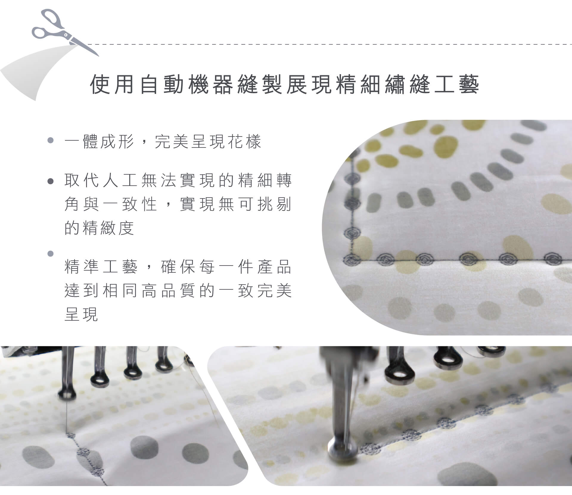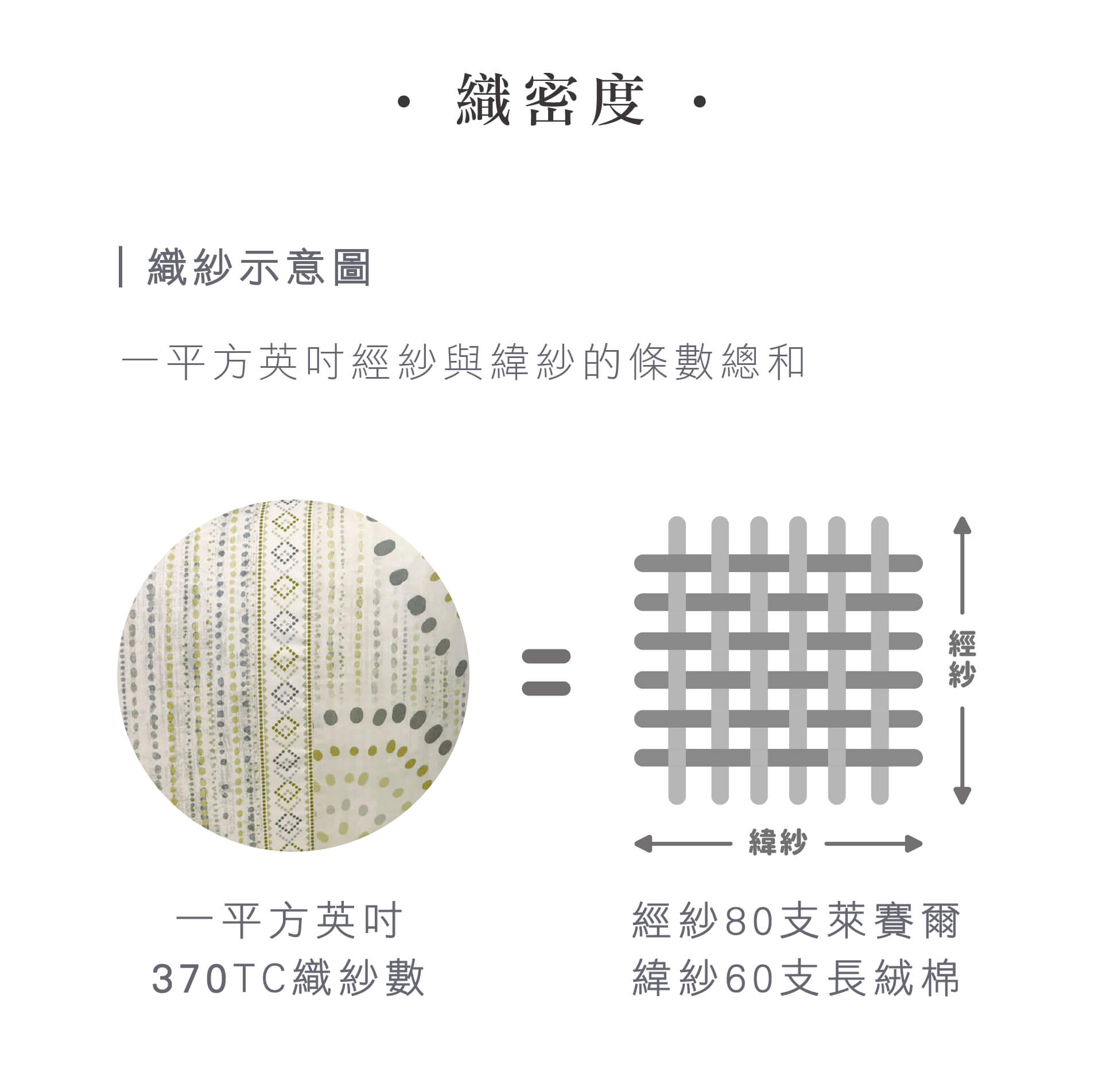 ‧ 370TC 高織密度,布面厚實飽滿,改善天絲洗滌後軟爛易皺的缺點。
