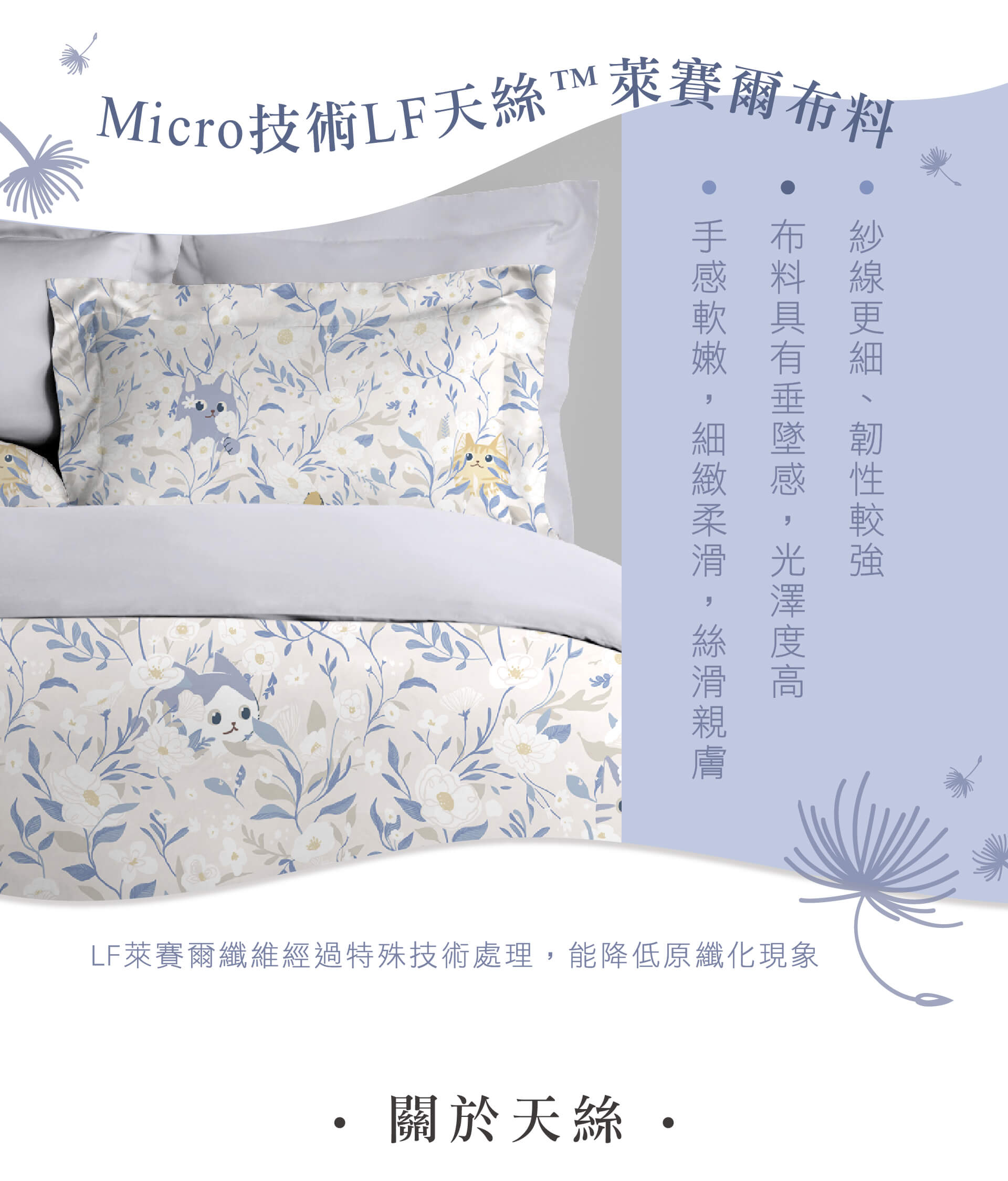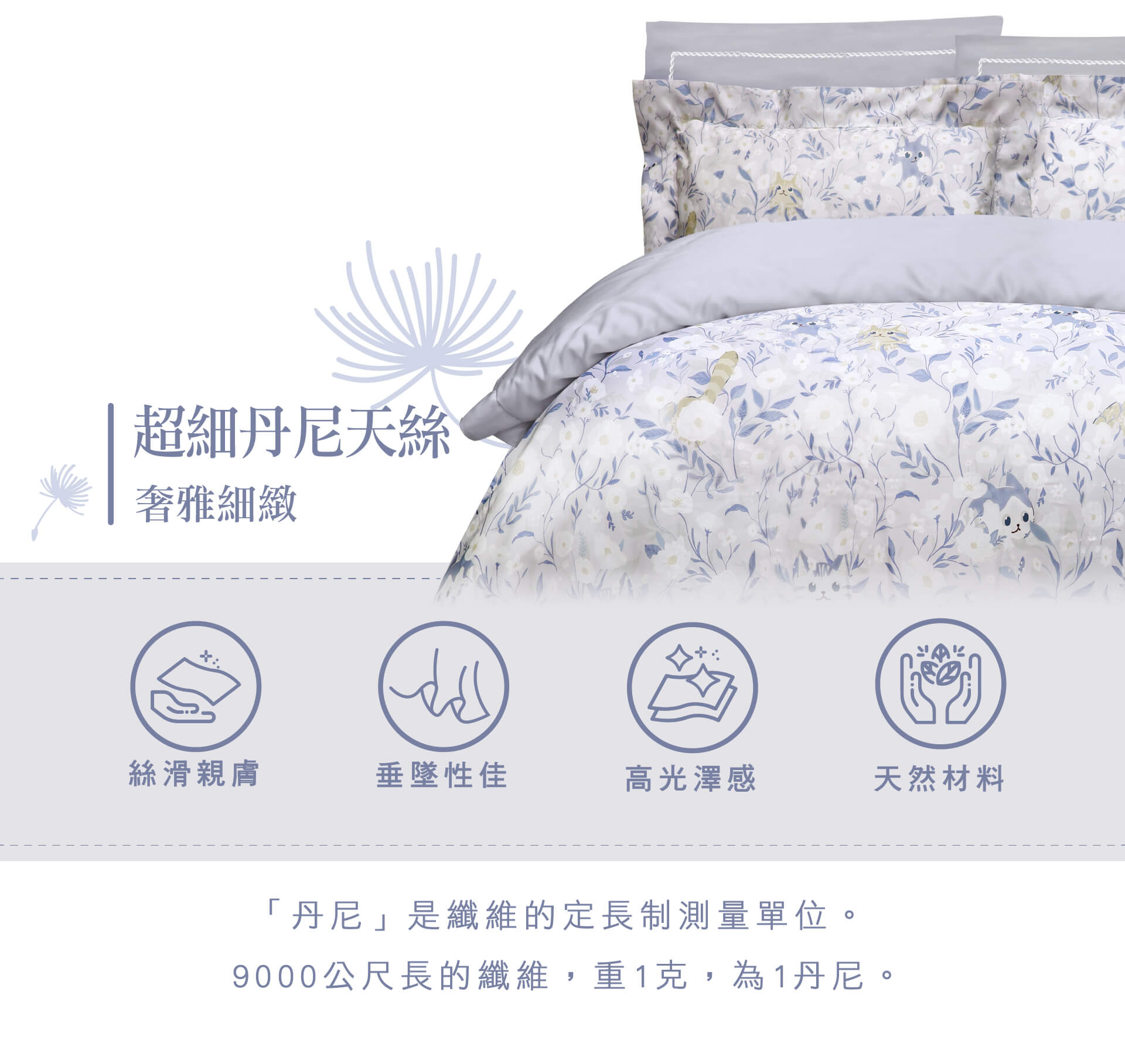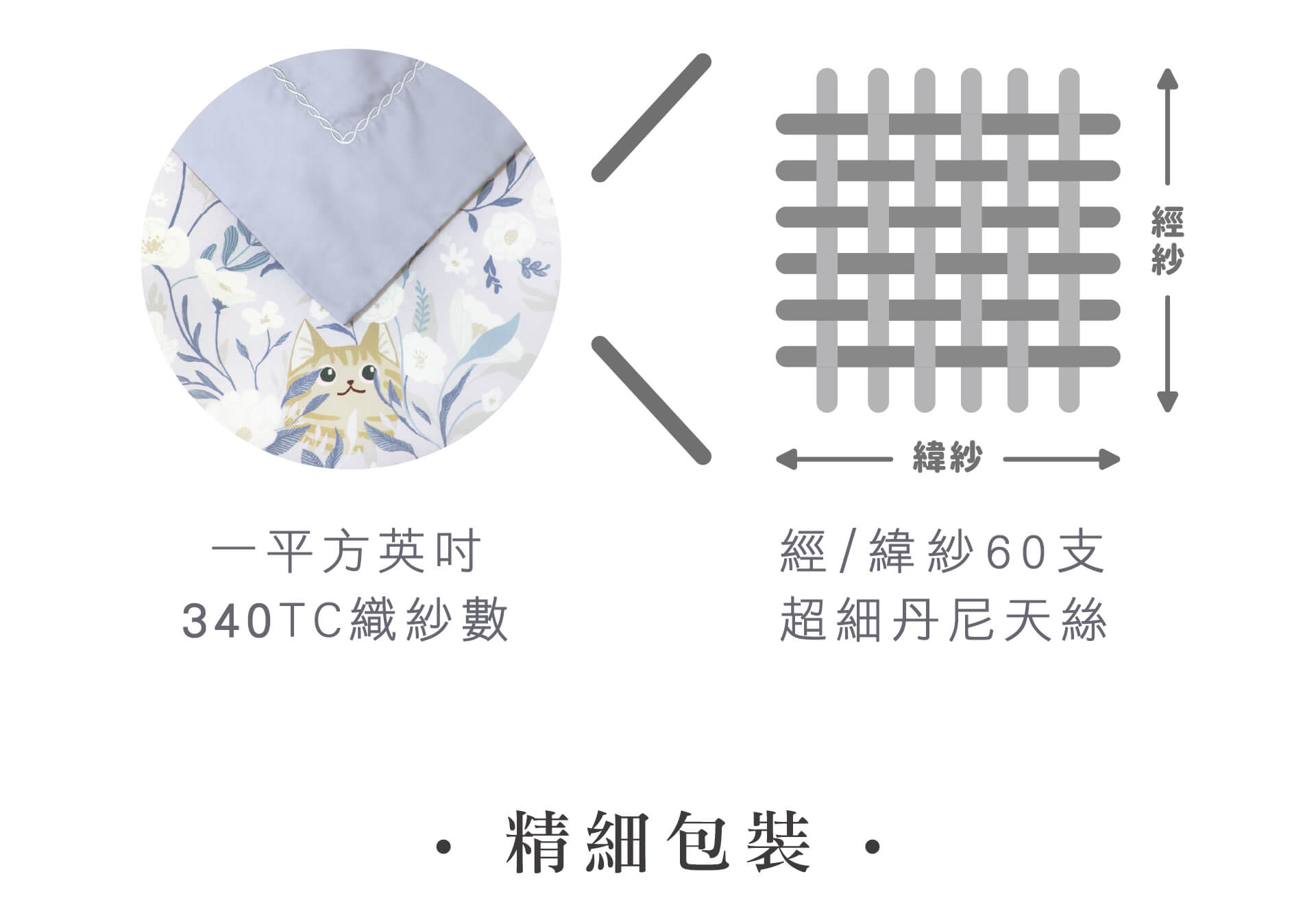 | 產品選項 | 兩用被 5 x 7, 兩用被 6 x 7, 床包 3.5 x 6.2, 床包 5 x 6.2, 床包 6 x 6.2, 床包 6 x 7, 歐式枕套, 美式枕套 |