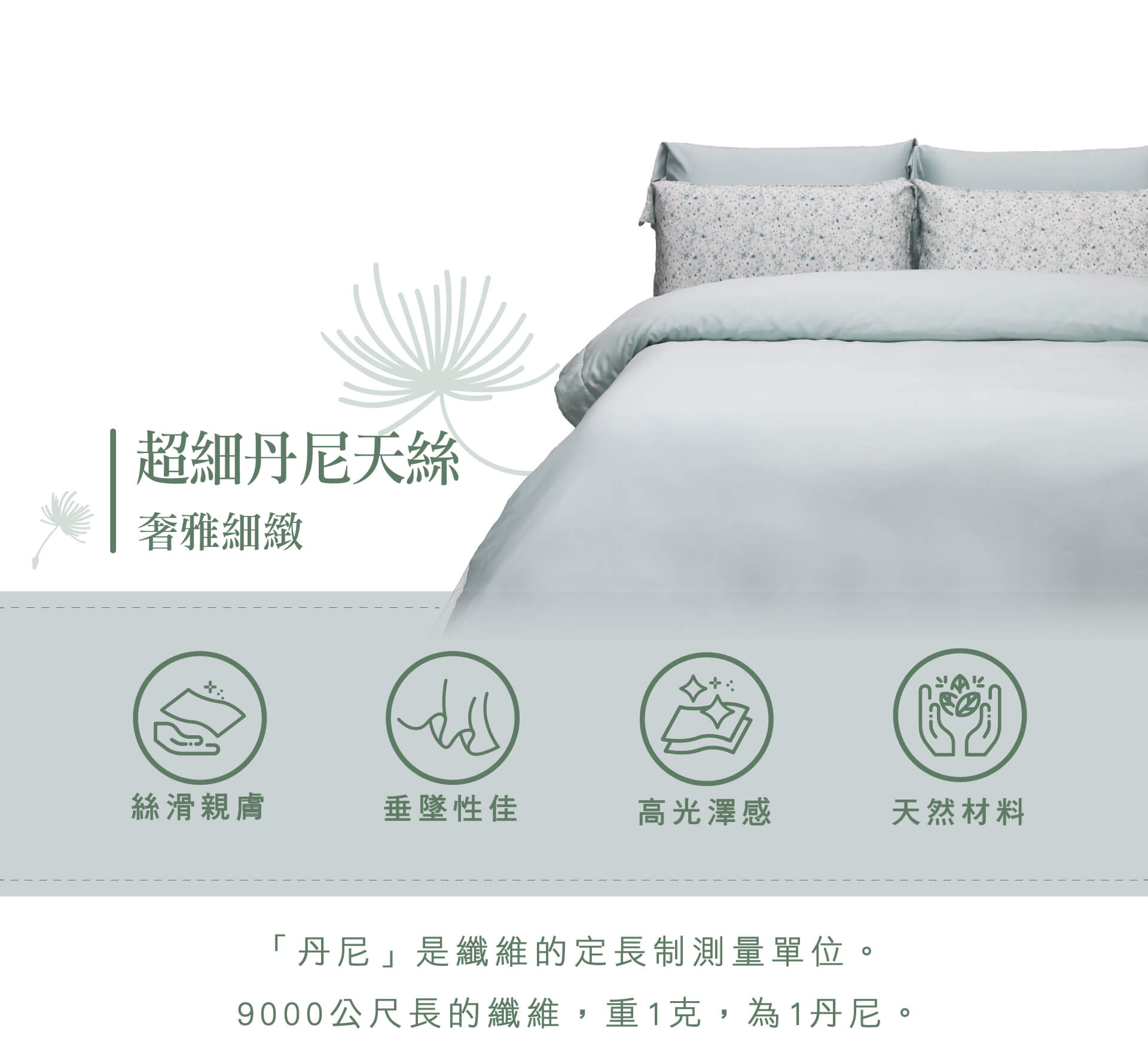 | 產品選項 | 兩用被 5 x 7, 兩用被 6 x 7, 床包 3.5 x 6.2, 床包 5 x 6.2, 床包 6 x 6.2, 床包 6 x 7, 歐式枕套, 美式枕套 |